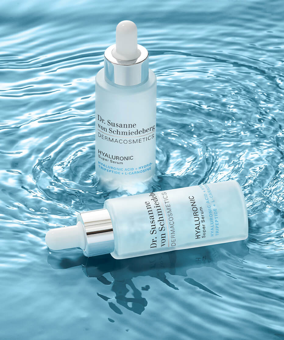 Das Hyaluronic Super Serum mit der Wirkstoffkombination aus konzentrierter Hyaluronsäure, Hydro-Tripeptid und L-Carnosine ist der Super-Booster mit Hydro-Plumping-Effekt. Das Hyaluronic Super Serum enthält 10 verschiedene Arten der Hyaluronsäure, die sich in den oberen Ebenen der Haut anlagern und für einen sofortigen und langanhaltenden Feuchtigkeits- und Aufpolsterungs-Effekt sorgen. Unterstützt wird dieser Effekt durch ein Hydro-Tripeptid, das die hauteigene Hyaluronsäureproduktion anregt. L-Carnosine kann A.G.Es (Advanced Glycation Endproducts), die in der Haut für die Verzuckerung verantwortlich sind, reduzieren und somit den Prozess der Hautalterung verlangsamen. Das sichtbare Ergebnis: der absolute Super-Booster mit Hydro-Plumping-Effekt lässt die Haut frisch und erholt aussehen.
