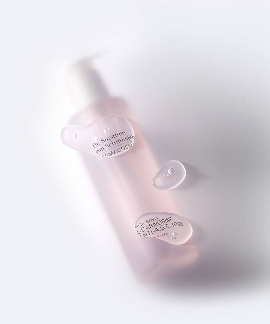 Der pflegende und belebende Multi-Effect L-Carnosine Anti-A.G.E. Toner mit Power-Peptiden und L-Carnosine unterstützt die Kollagensynthese, versorgt die Haut optimal mit Feuchtigkeit und sorgt so für einen ausgeglichenen Teint. Der einzigartige Wirkstoff L-Carnosine kann A.G.E.s (Advanced Glycation Endproducts), die in der Haut für deren Verzuckerung verantwortlich sind, reduzieren und somit den Prozess der Hautalterung verlangsamen. Allantoin und Provitamin B5 pflegen die Haut intensiv und sorgen so für ein ebenmäßiges Hautbild. Die einzigartige Formel hat eine porenverfeinernde und ausgleichende Wirkung. Für mehr Ebenmäßigkeit und ein glatteres Hautbild. Unebenheiten und feine Linien werden minimiert – die Haut wirkt sofort strahlend und erfrischt. Das Ergebnis: Ein verfeinertes Hautbild für eine strahlende und jugendlichere Haut – perfekt vorbereitet für die anschließende Pflege.