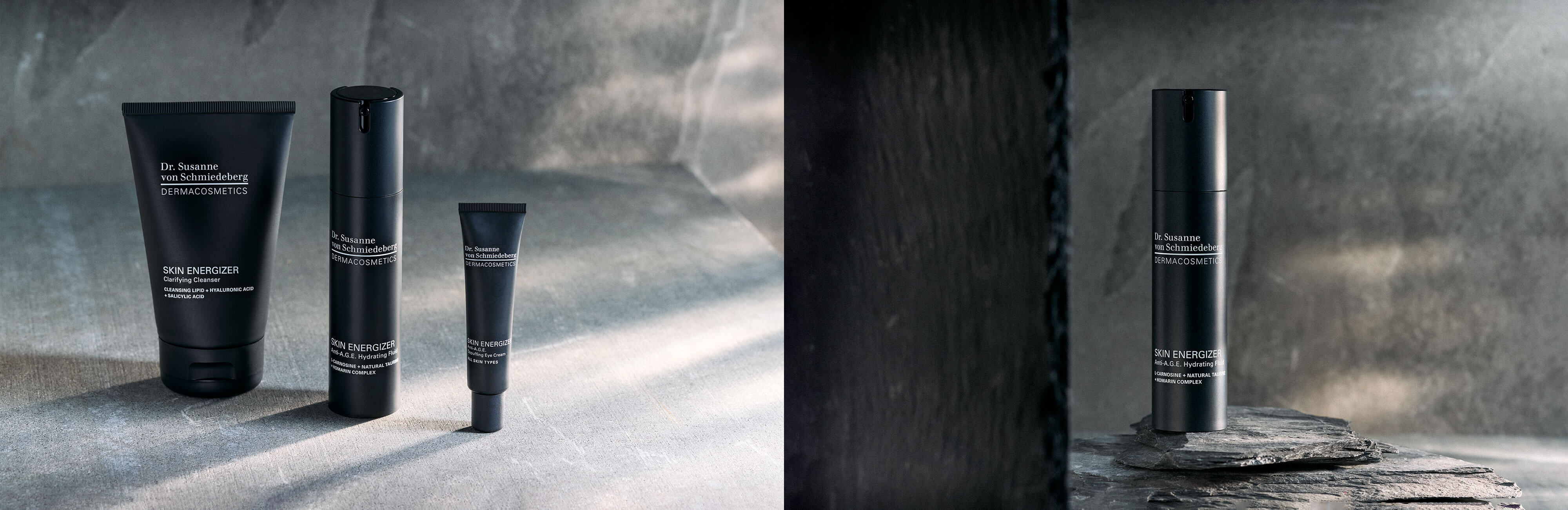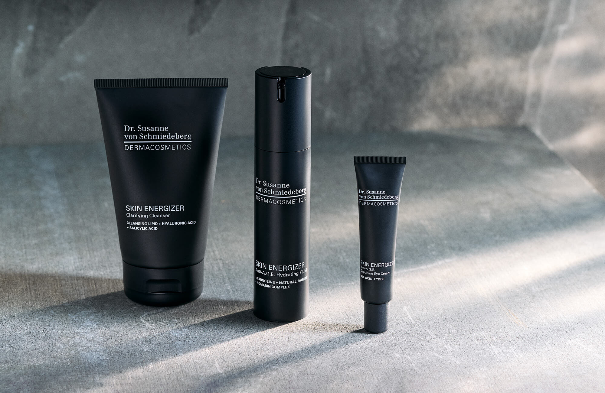 With Skin Energizer, Dr. Susanne von Schmiedeberg presents her first skincare line specifically for men: cleansing, hydration, and anti-aging effects for strengthened and revitalized skin.