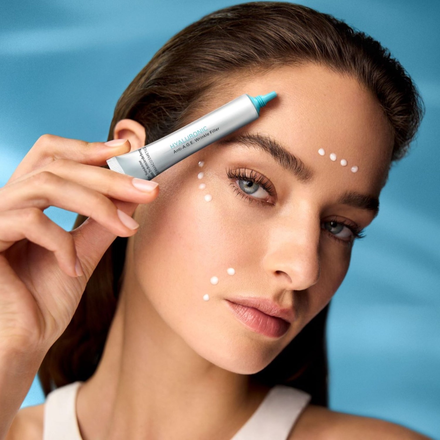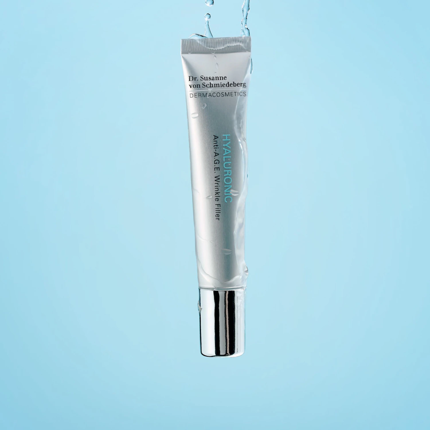 The Hyaluronic Anti-A.G.E. Wrinkle Filler contains 10 different types of hyaluronic acid, which provide an immediate and long-lasting moisturizing and plumping effect. The hydro-tripeptide also aids the skin’s natural hyaluronic acid production. A special barley extract develops its targeted effect as a wrinkle filler for an immediate firming effect and also restores the lipid barrier so that moisture is retained in the skin. L-Carnosine is capable of reducing glycation of the cells, thus slowing down the process of skin aging.
