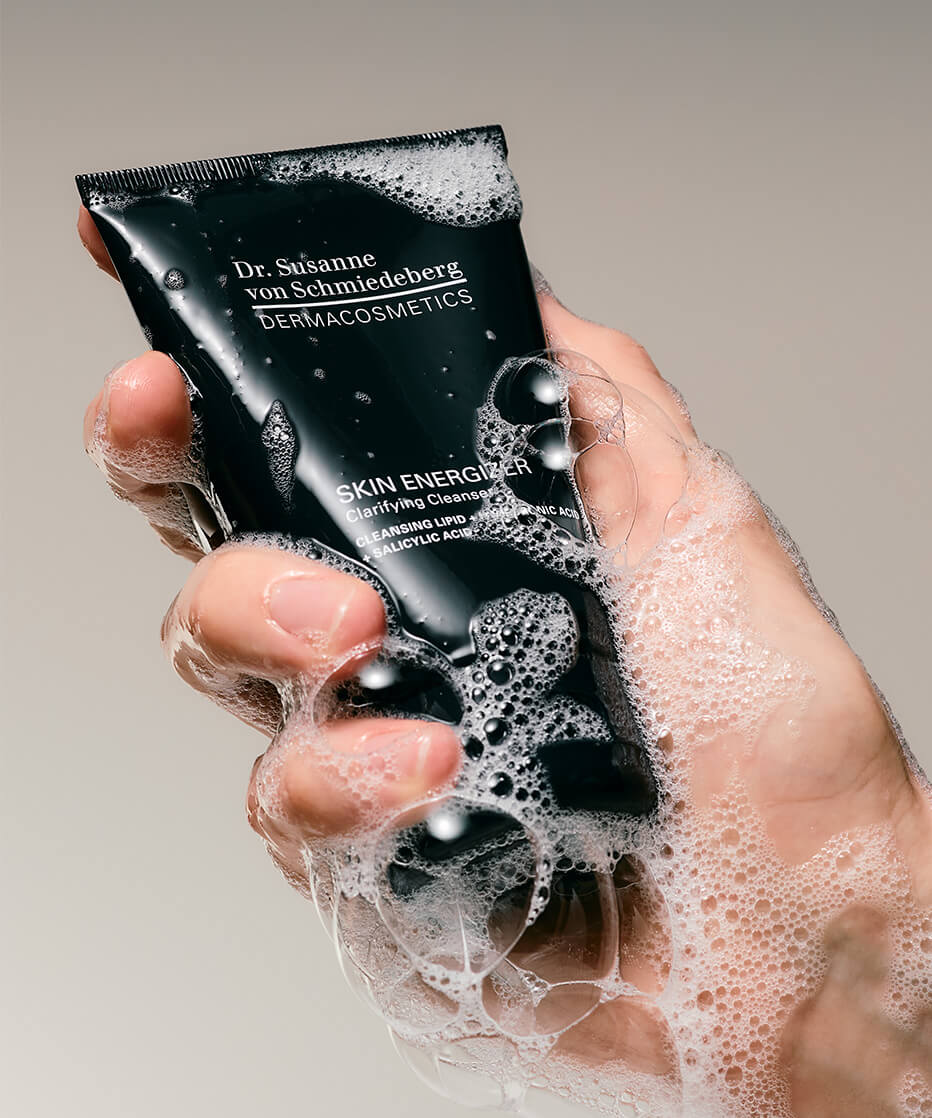 The Skin Energizer Clarifying Cleanser cleanses the skin deep into the pores and leaves it feeling refreshed. The formulation with salicylic acid has a gentle exfoliating effect and thus refines pores. Regular use regulates sebum production and effectively removes impurities. Panthenol leaves the skin feeling moisturised and fresh even during cleansing. The visible result: pore-deep cleansed skin for a clear, radiant complexion.